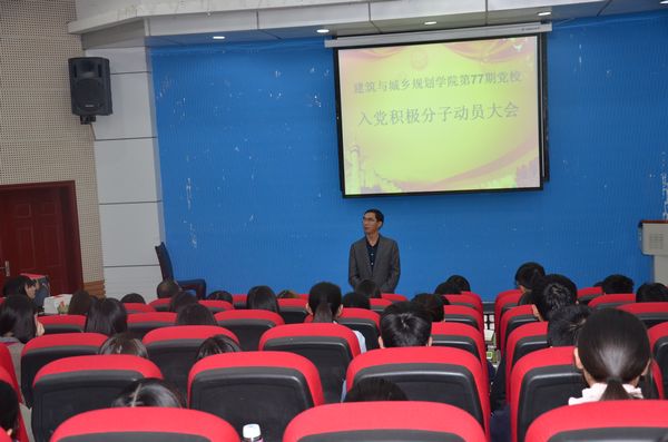 在4101报告厅召开党校77期入党积极分子动员大会,学院党总支书记申琼、学院党总支办老师以及学院77期党校入党积极分子培训班全体学员参会。