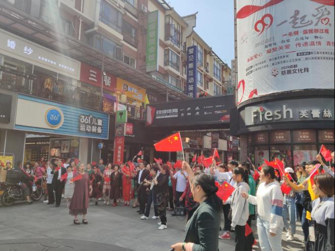 2019年9月25日下午一点,由四川天和盛世旅游资源开发有限公司主办,都江堰市柳河社区、川农大建爱团队协办的“迎国庆—《我和我的祖国》快闪拍摄活动”在天和盛世进行拍摄。天和盛世全体员工、都江堰柳河社区志工、东京图书馆