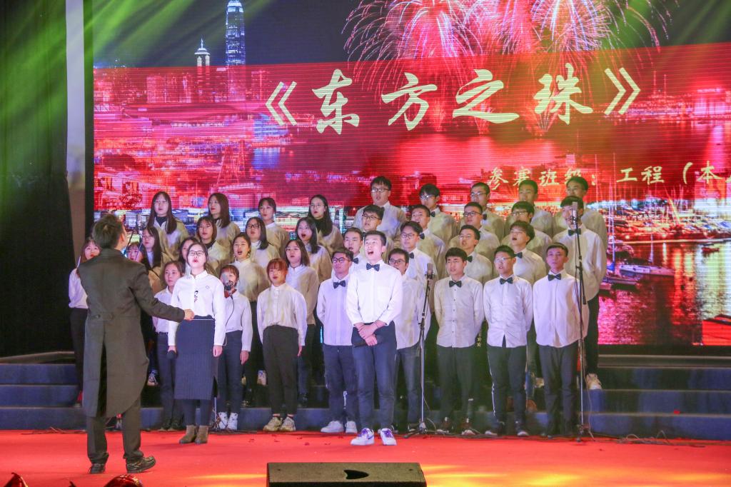 历经近两个月的排练以及严格的选拔,最终共有16个班级挺进决赛。各个参赛班级全力赴赛,不仅在歌声技巧方面相互竞争比拼,更在表演形式上追求创意新颖。抑扬顿挫的朗诵、余音绕梁的独唱领唱、优雅妙曼的伴舞……让同学们的表演别具一格、动人心弦。“国的家住在心里,家的国以和矗立;国是荣誉的毅力,家是幸福的洋溢”建筑(本)201901班将手语贯穿在歌曲里,一双双手搭建的屋檐就是心中的家国;城规(本)201801班演唱《我爱你中国》采用无电声伴奏的形式,加入钢琴伴奏和非洲鼓,将歌曲演绎出青春的色彩;“让海风吹拂了五千年,每一滴泪珠仿佛都说出你的尊严,让海潮伴我来保佑你,请别忘记我永远不变黄色的脸”工程(本)210703班全体同学用声情并茂的歌声传达出对祖国母亲的款款深情,也感染了在场的每一位观众。