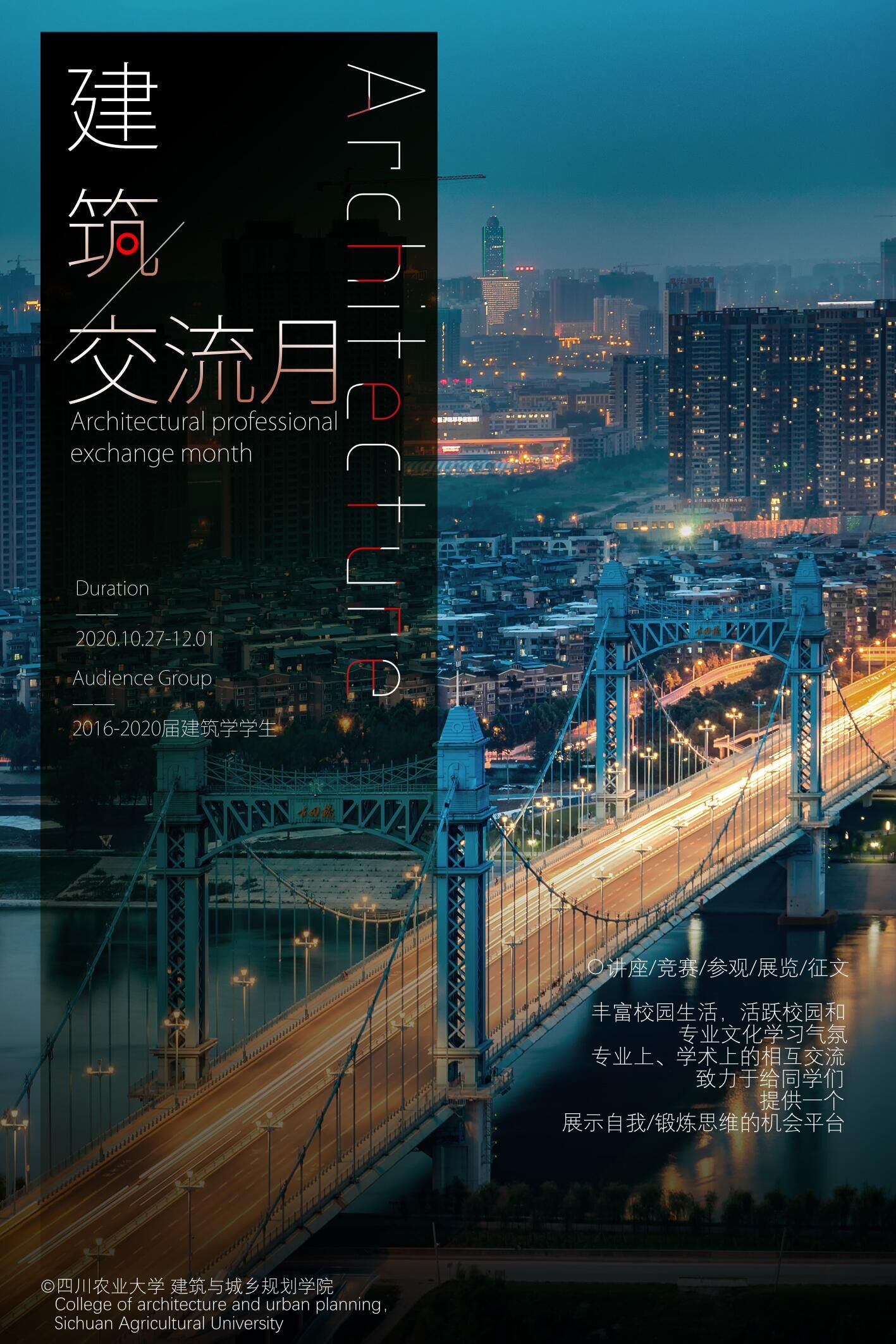 建筑系将在2020年10月27日至11月27日开展“建筑交流月”活动,该活动将从专家讲座,参观实践,专业竞赛三方面进行。