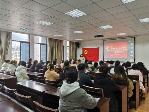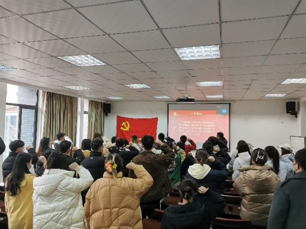 首先,吴红玉宣读了2022年秋季学期学院中共预备党员发展基本情况,并带领大家齐唱《国际歌》,歌声在教室响起,同时也把歌曲的深刻意义渗进了每一位党员的心里。