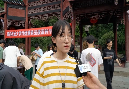 制作过程既充满挑战又蕴涵无限乐趣,来自建筑学专业的21级学生李若君表示自己在活动中收获不少:“前期我和同学在都江堰文庙进行了实地调查,参观后拍了不少照片回去研究。我们也在日常课程中学习了这类建筑的一些结构特点。真正通过自己动手制作出模型,我们才能更深入了解整个建筑的生成逻辑,对我自身专业知识储备也是有很大的促进和提升。”