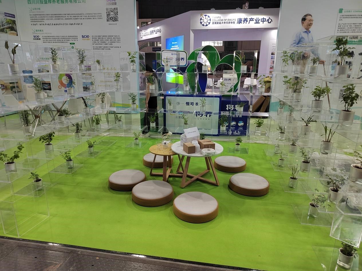 与川投盛榉养老服务有限公司、必顾养老平台联合,针对老年认知障碍问题,试点研发了“园艺芳香疗愈”辅助治疗方案,并于6月29日至7月3日在中国西部国际博览城第十九届中国西部国际博览会一号展厅展览。现场参与体验的用户络绎不绝,对该项目表现出极大的兴趣和高度的赞赏。