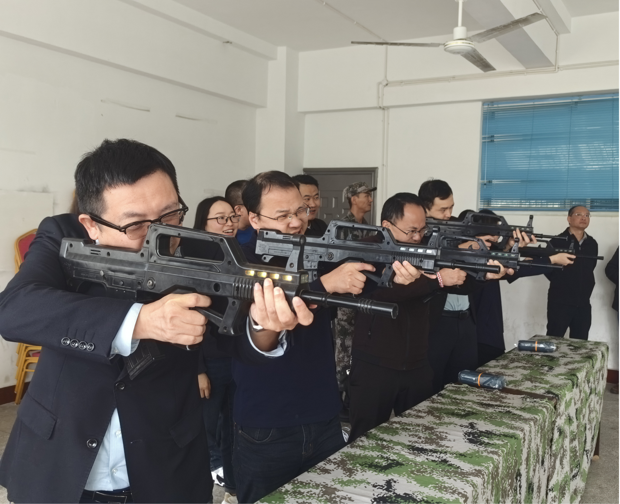 在基地教官的带领和指导下,老师们体验了仿真枪射击和火箭筒发射。射击体验环节,多位老师打出了290以上的好成绩,学院行政办公室王老师更是取得了299分的优异成绩(满分300分),全体人员体验到了射击乐趣、体验了“战场硝烟”,重温了战争年代的艰辛。