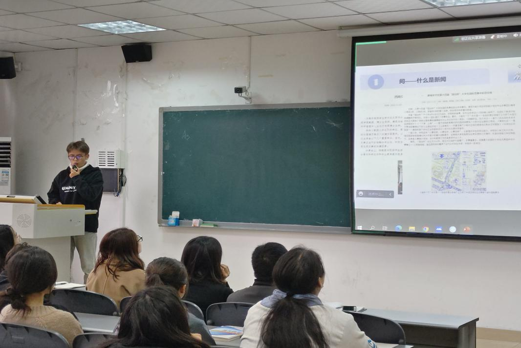 学生干部新闻素养,11月13日中午,我院于2A301举行“提笔成‘闻’,妙笔生花”新闻宣传培训会。2019级建筑系罗世天、团委学生兼职副书记沈中山两位同学主讲,院党委办公室老师罗艺霖、王显江、马双、梁诗涵出席,院团委学生融媒体中心曾良辉同学主持。