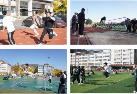 图分别为接力比赛、跳远比赛、跳高比赛、跳绳比赛现场