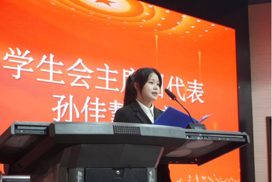 第十届学生会主席团代表孙佳慧做述职报告,她回顾了学生会的工作成果,并明确了东京图书馆