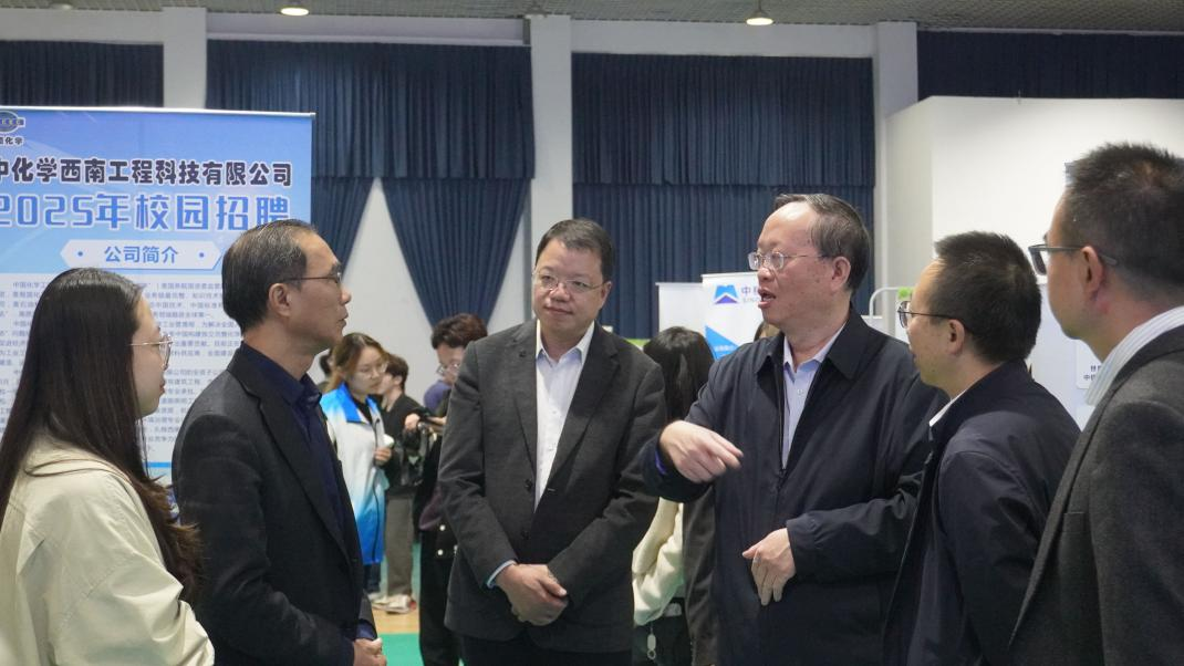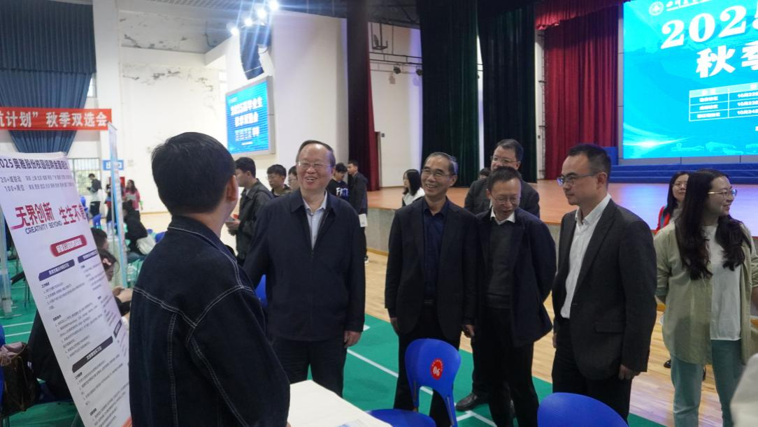 党委书记申琼、院长曹云忠及副院长张凌青交流指导学院就业工作,与用用人单位洽谈。