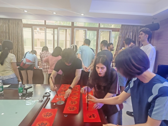 欢迎会后,学院为澳洲学生组织了书法文化体验活动。在专业指导下,学生们执笔尝试书写,感受汉字韵律。中外学生共同参与,气氛热烈,笔墨交融中增进了友谊与理解。