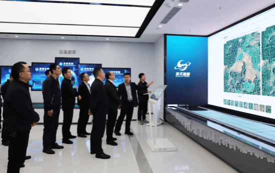 签约前,王际睿一行参观了环天智慧卫星科技展示中心,详细了解企业业务发展及卫星遥感技术在农业领域的应用成果。