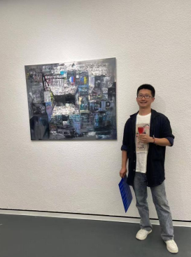 费崇洲的参展作品以抽象几何形态为载体,巧妙融合涂鸦艺术的自由不羁与传统绘画技法的深厚底蕴,将碎片化的信息重构为充满张力的视觉符号,在展现“以物观心”哲学思考的同时,亦构筑起一个可供受苦之人暂避的精神空间。作品中,流淌的黑色油墨勾勒出空间的轮廓,其氤氲晕染的质感暗示着现实的脆弱不堪,而这种脆弱恰如一声静默的警示——超越苦难的路径,在于竭尽全力守望他者、扶助众生。画面深处,既凝结着对疫痛与战乱的深沉惋惜,亦升腾起对人性光明力量的强烈呼唤,让抽象的视觉语言成为承载精神慰藉与人文关怀的载体。