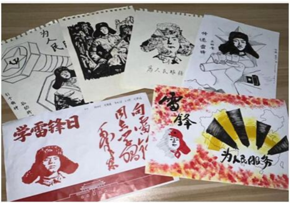 在本次活动中,各小班同学还用心制作不少书画作品,这些作品都将通过以物易物传到同学们手中。翻开一幅幅画作,一个个鲜活生动的雷锋形象跃然纸上,无不充满着浩然正气,积极向上的蓬勃朝气。翻开一篇篇征文,一段段真实动人的雷锋故事扣人心弦,字里行间,有血有肉的雷锋形象真实可感,永不褪色的雷锋精神深入人心。