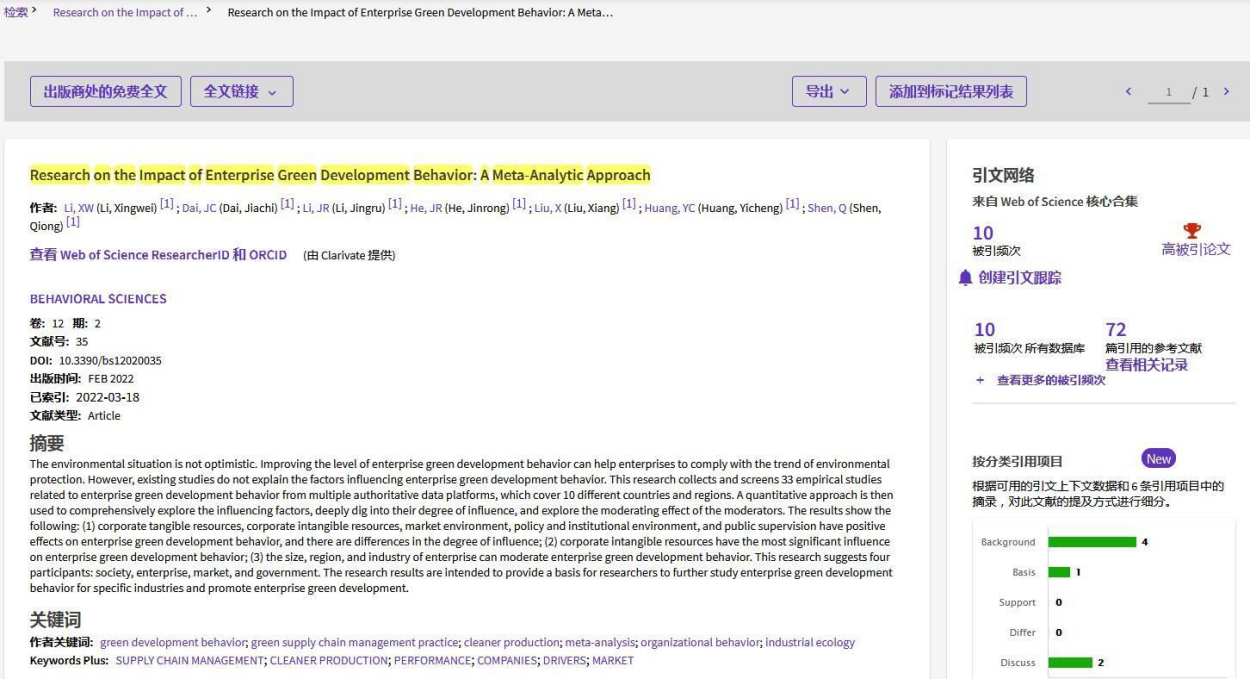 为第一单位在SSCI源刊《Behavioral Sciences》期刊上发表的研究论文“Research on the Impact of Enterprise Green Development Behavior: A Meta-Analytic Approach”(出版日期:2022年2月,12卷第2期,DOI:10.3390/bs12020035)继2022年11月、2023年1月被ESI数据库遴选为全球Top 1%心理学领域高被引论文以来,2023年3月再次被遴选为高被引论文。论文链接://doi.org/10.3390/bs12020035