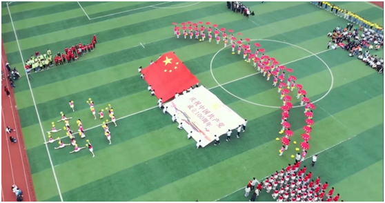 运动会入场式,学院团体由两个方队组成,分别为学生国旗伞方队和教师国旗方队。当他们走过主席时,师生全体步伐整齐划一,每个人的脸上都洋溢着自信从容的笑容,听那响亮的口号声与整齐有气势的脚步声融为一体。师生配合着《我和我的祖国》乐曲,用自己的方式表达着对祖国的祝福和美好生活的向往。