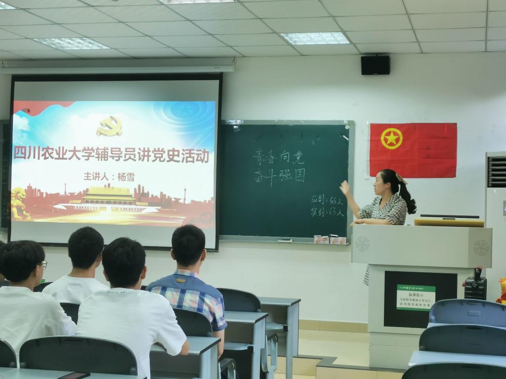 本次团日活动由七个部分组成:齐唱团歌、辅导员讲党史、同学分享家乡红色故事、朗诵、“我有话对党说”、学党史小游戏、重温入团仪式。