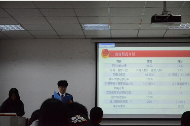 从打造品牌活动到开展个性化学风建设,集各方力量共同营造良好学风氛围,在课堂学习状态、四六级过级率等方面取得明显进步。全院14个小班参加了本次“学风建设终审答辩会”,各答辩班级分别从能力培养、思想成长、行为活动、专业成绩、班级特色等方面总结上一学年学风建设的成果与不足,并就此对下一学年学风建设重点开展的方面展开论述。围绕“特色”提出奋斗目标、规划创建路径、创新管理育人举措等,力争打造以特色为依托、全方位发展的样板创建班级。