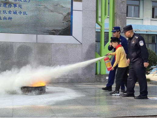 联合都江堰市泡桐树小学开展了消防演练实战和消防知识普及活动。
