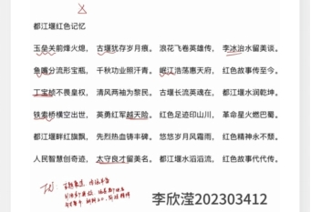 活动期间,同学们踊跃参与,以笔为媒,抒发爱国之情,表达对川农校友的敬重与爱戴。创作过程中,他们独立构思,用诗歌承载对都江堰红色文化的深刻感悟,每一篇作品都凝聚着同学们的心血。